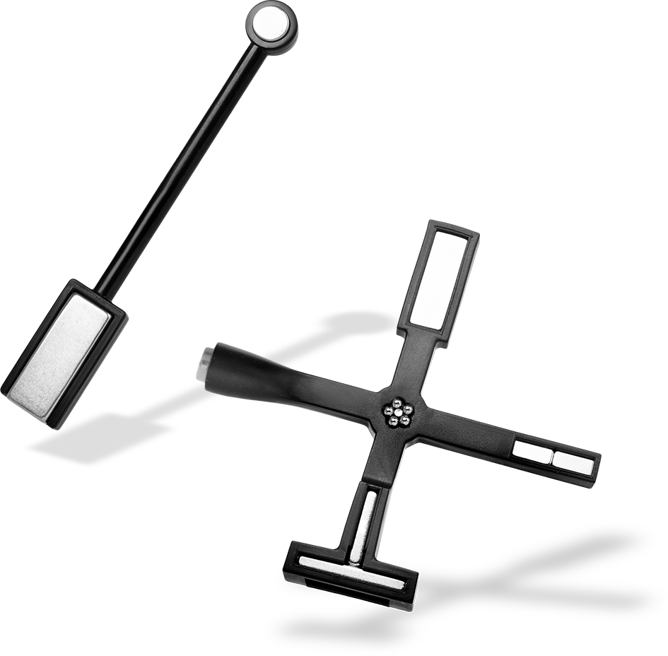 MINI WAND: dual-ended magnet. Circular magnet on one end, rectangular on the other.