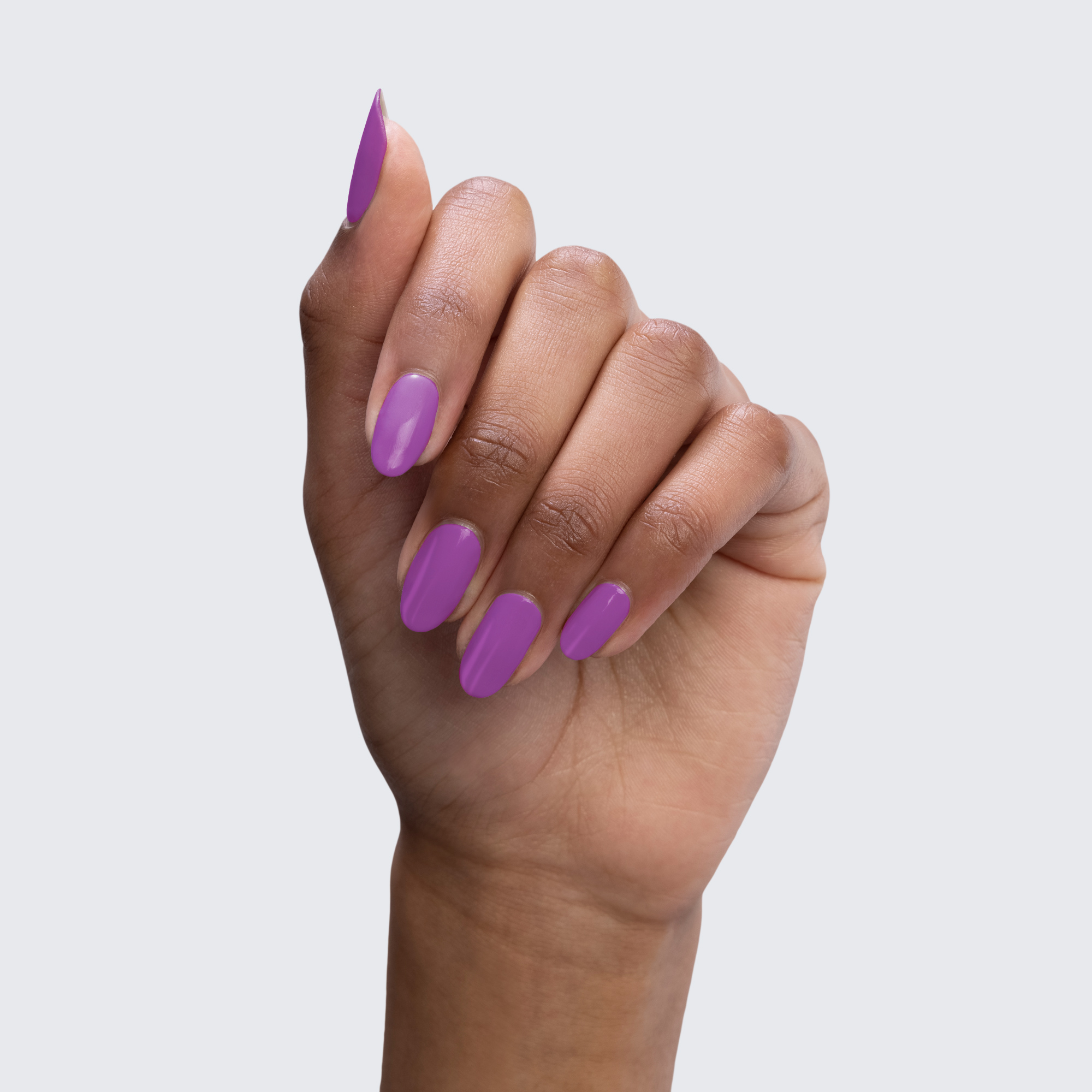Neon purple. Light. Opaque. Cool undertone. Semi-gloss.